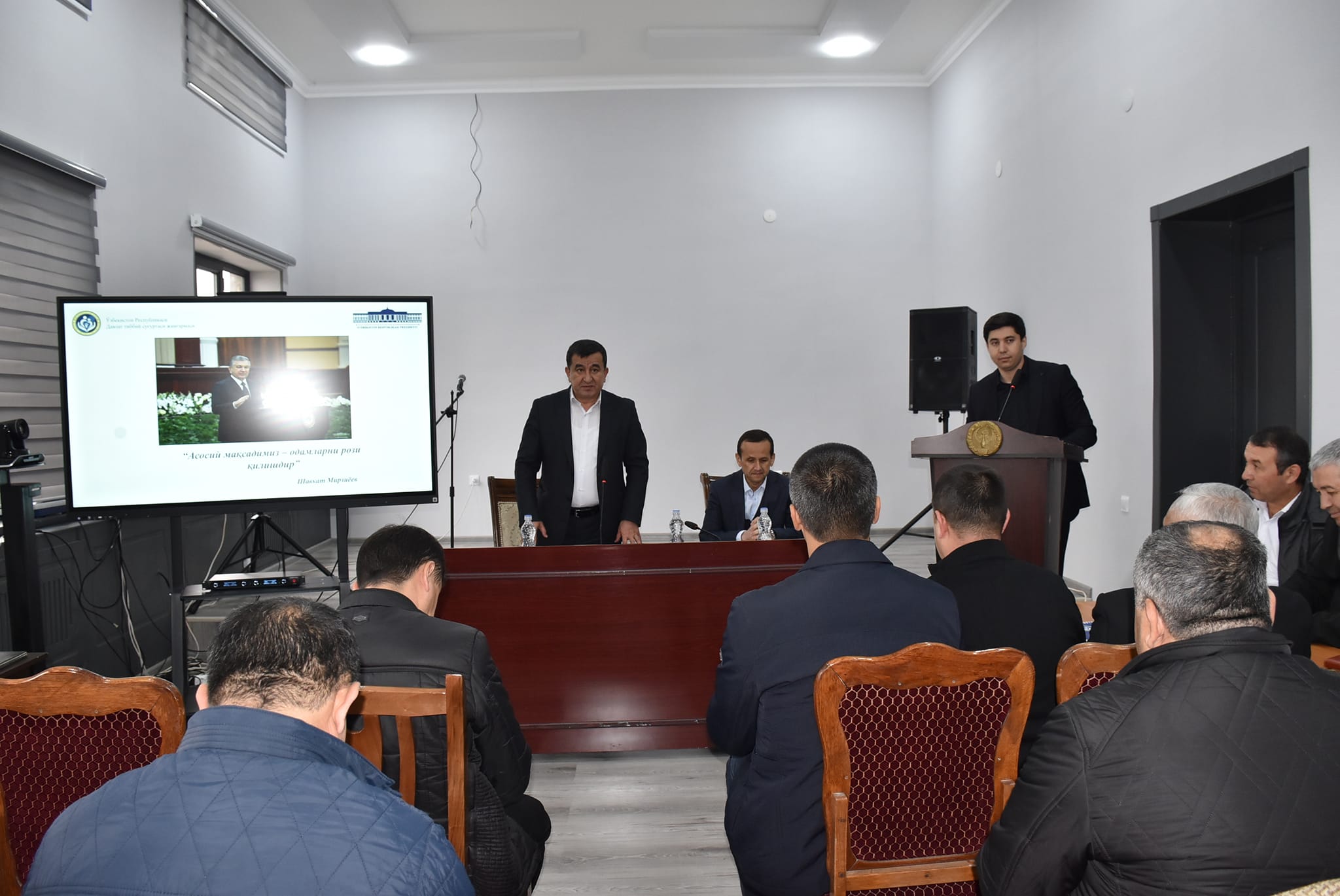 Viloyat SSB boshlig‘i A.Boboyev rahbarligida va Davlat tibbiy sug‘urtasi jamg‘armasi ma‘sullari I.Majidov va N.Poshaxo‘jayevlar tomonidan O‘zbekiston Respublikasi Prezidentining 2024 yil 5 sentyabrdagi “Davlat tibbiy sug‘urtasi mexanizmlarini joriy etishga oid chora-tadbirlar to‘g‘risida”gi PQ-311-sonli qarori mazmun-mohiyati, qarordagi vazifalarni bajarilishi va davlat tibbiy sug‘urtasi tizimi mexanizmlari bo‘yicha seminar o‘tkazildi.